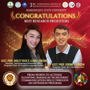 We congratulate them on their well-deserved recognition and are incredibly proud of their success in representing MarSU on the global stage. A heartfelt thank you to Prof. Dr. Diosdado P. Zulueta, President of MarSU, for his continued support and leadership, which enable our faculty members to excel in their research endeavors and contribute to global academic dialogues.