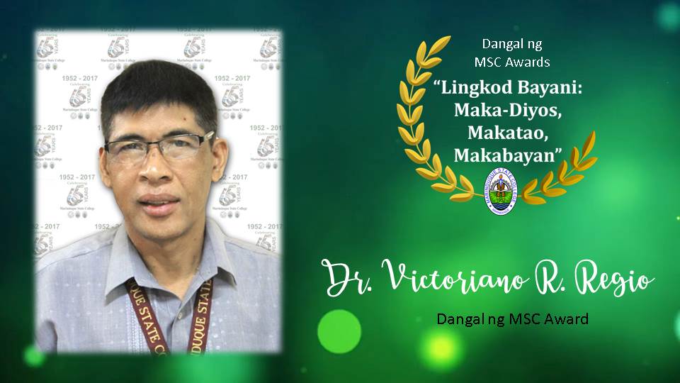 The Principal of MSC’s senior laboratory high school was feted with the highest award this year at the annual Dangal ng MSC Awards held at the Provincial Convention Center last October 1. Dr. Victoriano R. Regio, in his speech, expressed profound gratitude for the award which affirms and acknowledges the many years of dedicated service that he has devoted to the institution. Dr. Regio, who has been with MSC for several decades, admitted that this college has been like a second home to him – a testament to what makes a true MSCian deserving of this award.