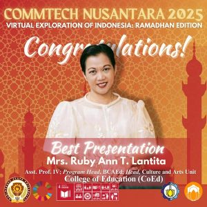 Marinduque, Philippines — Marinduque State University International Relations Office proudly recognizes the outstanding achievements of its participants in the CommTECH Nusantara 2025 Virtual Exploration of Indonesia – Ramadhan Edition. Competing alongside 124 participants from various universities worldwide, these representatives from the College of Education under the Bachelor of Culture and Arts Education program distinguished themselves through their dedication, skills, and commitment to cross-cultural learning during the two-week international program held from March 10 to March 21, 2025.