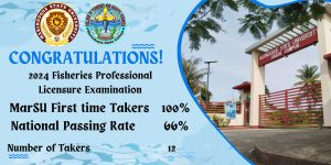 Marinduque, Philippines — The Marinduque State University College of Fisheries and Aquatic Sciences achieved an outstanding 100% (12 out of 12 first-time takers) passing rate versus the national passing rate of 66.60% (1,005 out of 1,509), successfully earning their licenses as Registered Fisheries Professionals in the August 2024 Fisheries Professionals Licensure Examination (FPLE).