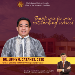 Boac, Marinduque, Philippines — We extend our deepest gratitude to Dr. Jimmy G. Catanes for his remarkable dedication and outstanding service to CHEDRO MIMAROPA. Your unwavering commitment, leadership, and hard work have left an indelible mark on our institution and the higher education sector as a whole.