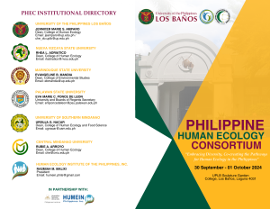 Los Baños, Laguna, Philippines, – Kasama sa Philippine Human Ecology Consortium ang Marinduque State University, sampu ng University of the Philippines Los Baños, Nueva Viscaya State University, Palawan State University, University of Southern Mindanao, Central Mindanao University at Human Ecology Institute of the Philippines, Inc na magsasagawa ng kumperensiya sa Setyembre 30 hanggang Oktubre 2.