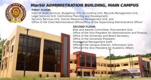 This is under the steadfast guidance and commitment of the administration led by Prof. Dr. Diosdado P. Zulueta-MarSU President with the endless support of Atty. Crispin Francis M. Jandusay-Vice President for Administration and Finance, Arch. Meynard M. Muhi-Director, Project Management Office, Alfredo M. Ofrecio III-Director, Financial Services, and other officials and personnel who greatly contributed to this administrative feat.
