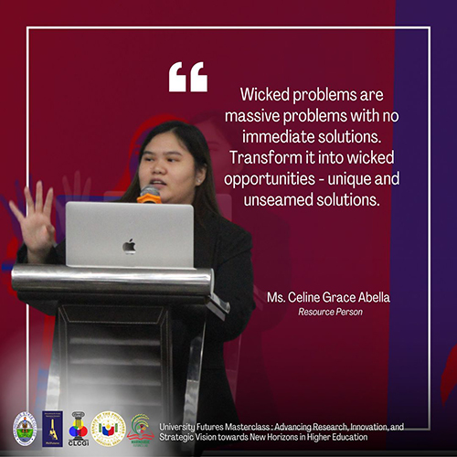Then, the next session “Scanning the Landscape and Navigating New Horizons,” was handled by Ms. Celine Grace Abella. The module allowed the learners to explore trends, emerging issues, and transformational drivers of change in higher education institutions. MSC participants was able to understand the external environment (social, technological, economic, and political dimensions), involving both current and future environments to identify potential disruptions, opportunities, and transformative shifts of their chosen topic.