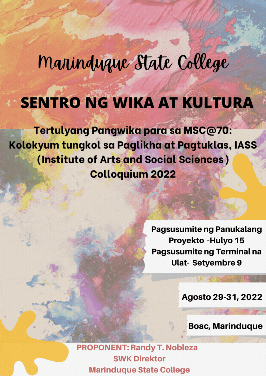 Boac, Marinduque – Muling nakikiisa ang Marinduque State College (MSC) Sentro ng Wika at Kultura sa pagdiriwang ng Buwan ng Wikang Pambansa. Ang tema ngayong taon, batay sa Komisyon sa WIkang Filipino (KWF) ay “Filipino at mga Katutubong Wika: Kasangkapan sa Pagtuklas at Paglikha.”