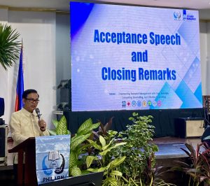 Los Baños, Laguna, Philippines — The outgoing PHILARM National President ,Dr. Melvin B. Carlos officially turned over the position to theMarinduque State University President, Prof. Diosdado P. Zulueta held during the PHILARM Fellowship, Recognition and Turnover Night on October 25, 2024 at Elvira O. Tan Hall, DOST-PCAARRD, Los Baños, Laguna as part of the PHILARM National Research Management Training.