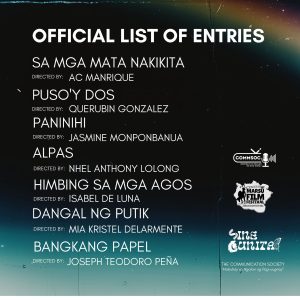 Kasama sa mga opisyal na listahan ng mga maiksing pelikula, “Sa mga Mata Nakikita” ni AC Manrique, “Puso’y Dos” ni Querubín Gonzalez, “Paninihi” ni Jasmine Monponbanua, “Alpas” ni Nhel Anthony Lolong, “Himbing sa mga Agos” ni Isabel de Luna, “Dangal ng Putik” ni Mia Kristel Delarmente at “Bangkang Papel” ni Joseph Teodoro Peña.
