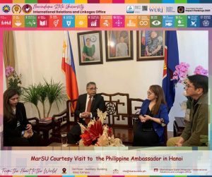 Hanoi, Vietnam — As part of its continuing commitment to internationalization and academic mobility, Marinduque State University (MarSU) joined De La Salle University–Dasmariñas (DLSU-D), Rizal Technological University (RTU), and Philippine Normal University (PNU) in a courtesy visit to the Philippine Embassy in Hanoi, Vietnam, marking a significant milestone in academic diplomacy and regional cooperation.